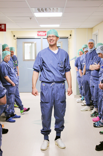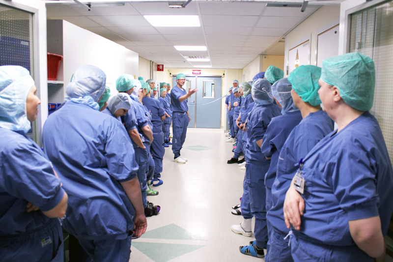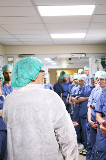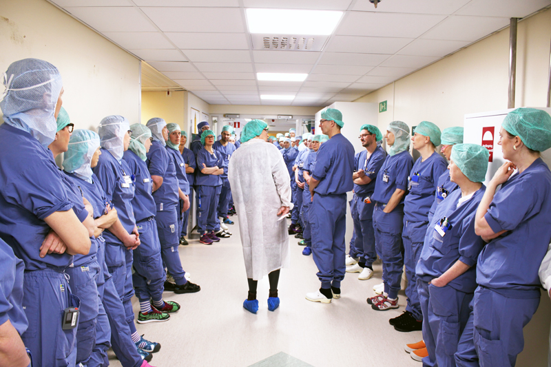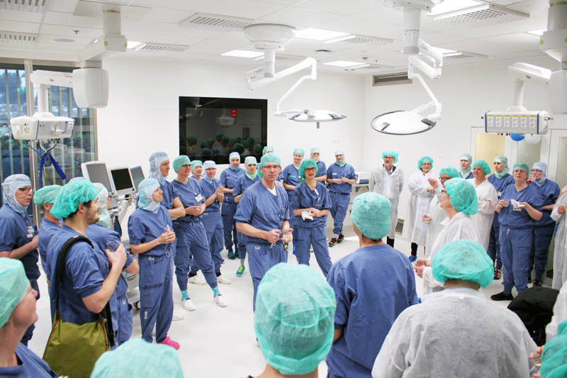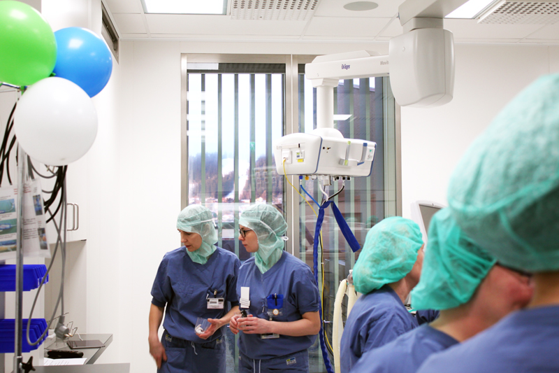 Salen är dubbelt så stor som de vanliga operationssalarna på sjukhuset. Väggarna är släta och vita, den toppmoderna utrustningen välputsad och blank. Utanför fönstret som sträcker sig från golv till tak på ena väggen lyser vintersolen upp skidbacken på Frösön.
